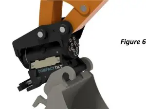 5. Check that there is no contact with the digging arm and the Compacttilt at full swing.